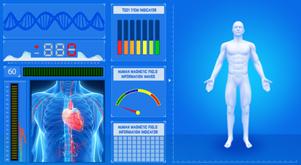 De magnetische resonantie analyse verzamelt gegevens van het menselijk lichaam via een hand-sensor en geeft de specifieke toestand weer van het menselijk lichaam op een bepaald moment. De Quantum Resonance Magnetic Analyzer meet het magnetische veld van de menselijke cellen op basis van bio-resonantie en radionika.