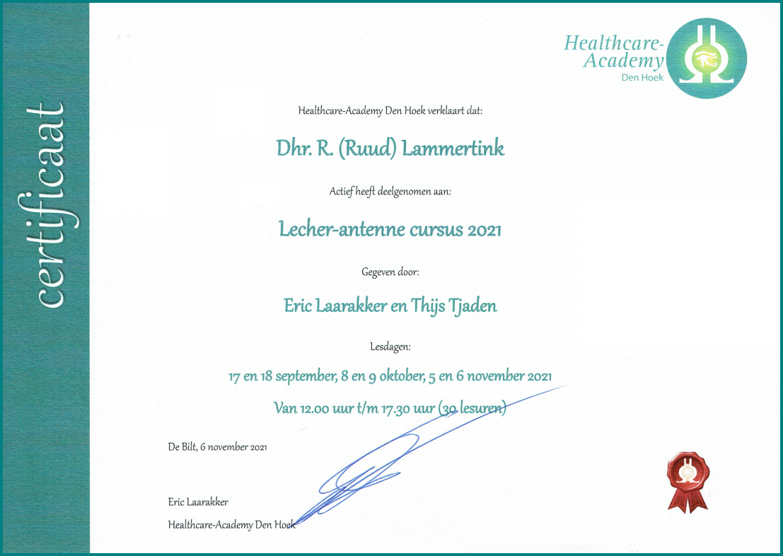 Certificaat Lecher-antenne cursus 2021
